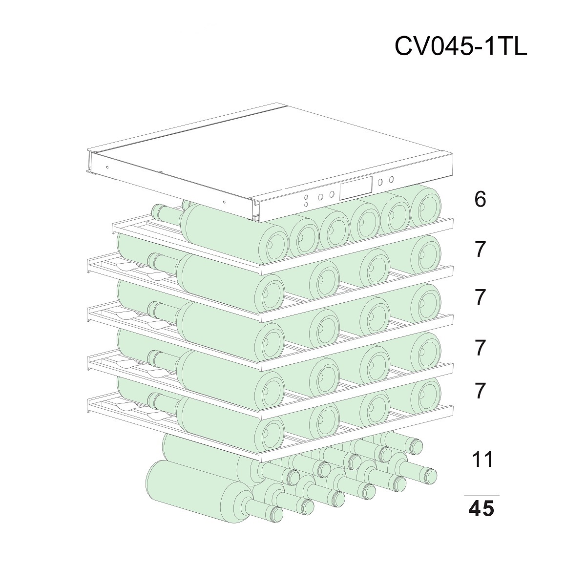 Винный шкаф Cavanova CV045-1TL предназначен для хранения при оптимальных условиях и демонстрации бутилированного вина различных сортов в барах, ресторанах, специализированных магазинах, подсобных складских помещениях, а также в домашних условиях. Модель оснащена монотемпературной холодильной камерой, правосторонней распашной дверью с длинной вертикальной рукояткой, прозрачным обзорным остеклением, цокольной решеткой и расположенной за дверью в верхней части фронта сенсорной панелью управления с жидкокристаллическим дисплеем индикации. Корпус выполнен из металла с антикоррозийным покрытием черного цвета, фронт рамы двери и рукоятка с поверхностью серебристого оттенка, полки – из массива древесины. В комплект поставки входят 5 полок с направляющими для размещения бутылок, комплект ключей к замку, инструкция по эксплуатации и гарантийный талон. Особенности: