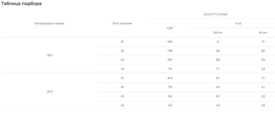 Сплит-системы на объем холодильных камер подобраны при обязательном соблюдении следующих условий эксплуатации:
