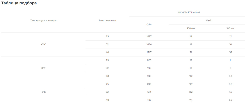 Сплит-системы на объем холодильных камер подобраны при обязательном соблюдении следующих условий эксплуатации: