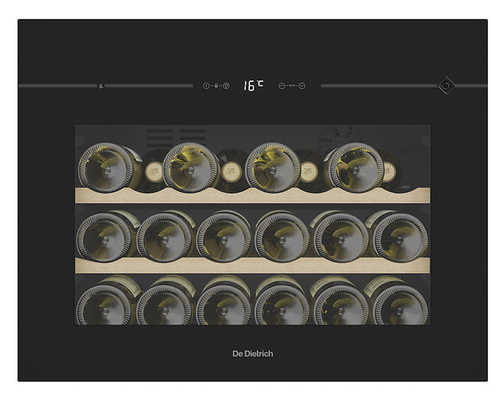 Винный шкаф De Dietrich DIW28FB из коллекции Philharmonie предназначен для демонстрации, охлаждения и хранения винных напитков на предприятиях торговли, общественного питания, в коттеджах и частных домах. Модель оснащена цифровым дисплеем, сенсорным управлением, светодиодным освещением и 2 съемными полками. Полки выполнены из дерева, дверь - из стекла с УФ-фильтром. Особенности: