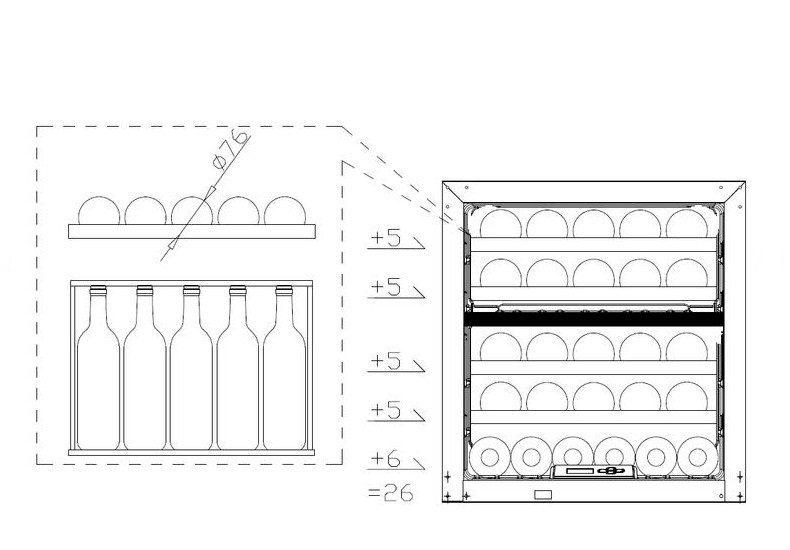 Винный шкаф MC Wine W35B предназначен для кратковременного хранения вина при определенном уровне влажности и температуры в ресторанах, специализированных магазинах, отелях, подсобных складских помещениях, в частных домах или квартирах и подготовки вина к подаче на стол. Модель оснащена сенсорной панелью управления, циферблатом, мягкой светодиодной подсветкой и 4 полками с телескопическими направляющими. Дверь выполнена из черного стекла с двухслойным серым стеклом LOW-E, полки - из массива бука. Не рекомендуется устанавливать шкаф рядом с нагревающимися электроприборами и под прямыми солнечными лучами. Особенности: