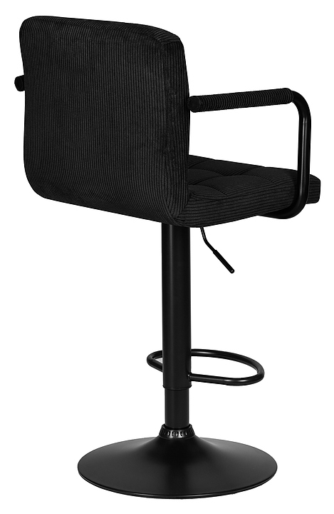 Барный стул DOBRIN 2041-52 KRUGER ARM BLACK предназначен для обустройства барной зоны в кухнях, столовых, гостиных, а также в кафе и ресторанах. Модель оснащена основанием в виде диска, мягким вращающимся сиденьем квадратной формы, механизмом регулировки высоты, мягкой спинкой, подлокотниками и подставкой для ног. Основание выполнено из металла, обивка - из вельвета. Особенности: