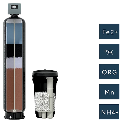 Система умягчения и обезжелезивания SpaceAqua ProMix 1465 V1EWDM используется на даче, в коттедже и загородном доме для очистки водопроводной и артезианской воды от солей жесткости, железа, марганца, аммония и органических соединений природного происхождения. Умягченная вода защищает водонагревательные приборы, электрочайники, стиральные и посудомоечные машины, продлевает срок службы бытовой техники, предотвратив образование накипи в системе водоснабжения, а также уменьшает расход моющих средств. Корпус Canature выполнен из пищевого пластика. В комплект поставки входит загрузка ProMix F. Особенности: