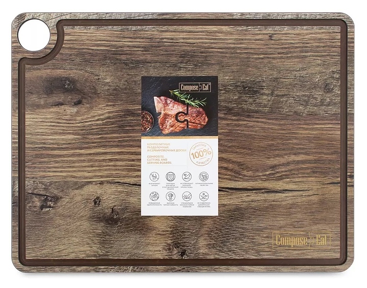 Доска разделочная c желобом ComposeEat ProFashion DRJ32240634KL6 32х24 см, дуб мореный