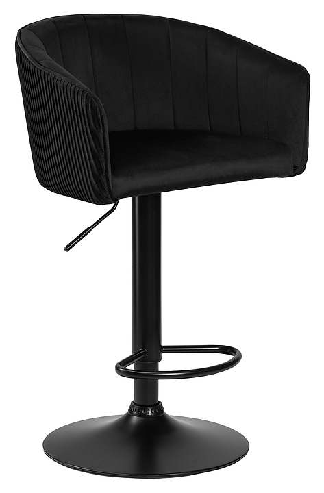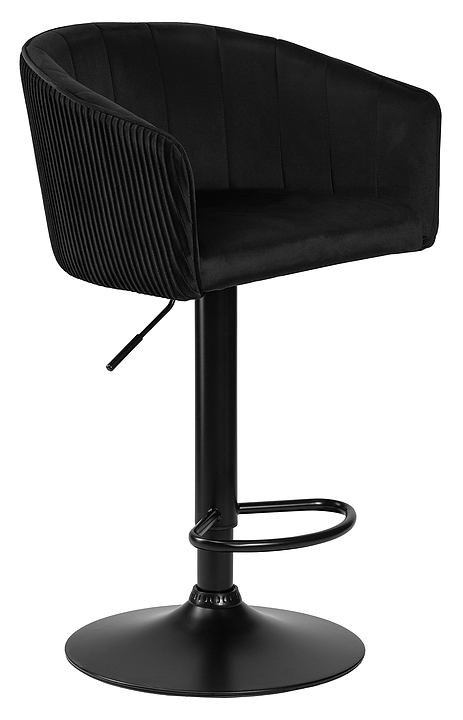 Барный стул DOBRIN 5025 BlackBase-LM DARCY BLACK предназначен для обустройства барной зоны в кухнях, столовых, гостиных, а также в кафе и ресторанах. Модель оснащена основанием в виде диска, опорой для ног, подлокотниками, мягким вращающимся сиденьем фигурной формы, механизмом регулировки высоты и мягкой спинкой для поддержки. Основание выполнено из металла, обивка - из велюра. Особенности: