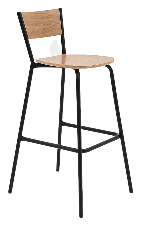 Барный стул BentWood Марсель Б, дуб предназначен для меблировки кафе и баров. Модель оснащена пластиковыми подпятниками. Каркас стула выполнен из стальной трубы, сиденье - из гнутоклееного шпона дуба. Цена указана за 1 стул. Особенности: