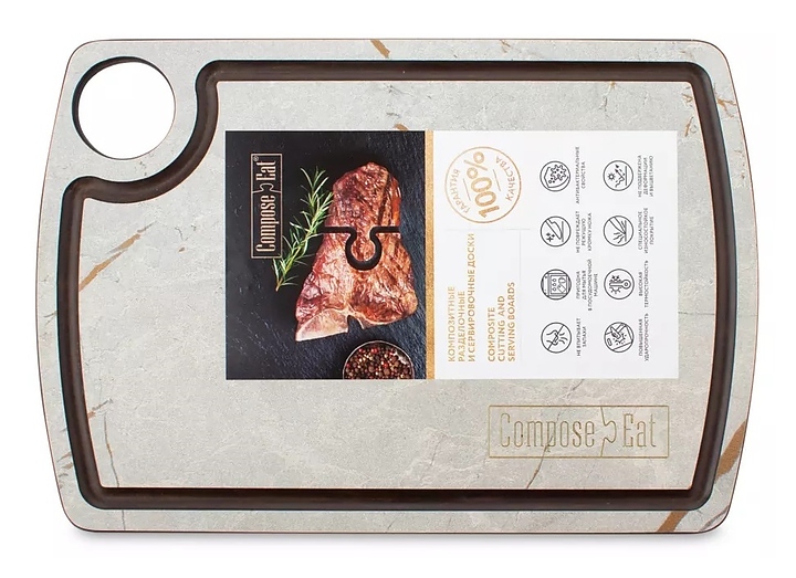 Доска разделочная с желобом ComposeEat Fashion DRJ22150435KL6 22х15 см, мраморный Грейс