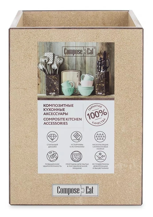 Подставка для кухонных принадлежностей ComposeEat Fashion PDG120433KL6 12х12х17 см, порфир кремовый