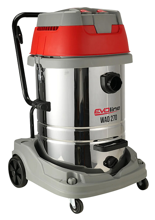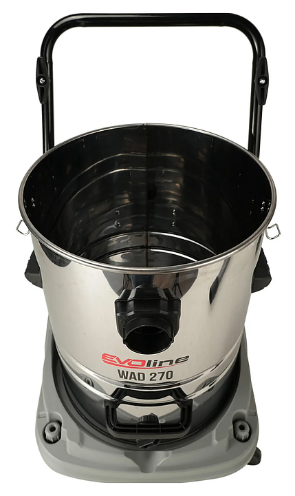 Электрический пылеводосос EVOline WAD 270 предназначен для сухой и влажной уборки в коммерческих и промышленных целях. Бак оснащен 2 мощными турбинами для быстрого сбора больших объемов мусора, сливной пробкой в нижней части и 2 защелками для надежной фиксации головы с турбиной. Бак выполнен из нержавеющей стали, защелки - из металла. Особенности: