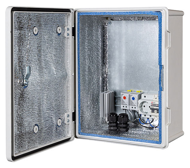 Климатический шкаф MASTERMANN Пластик-2УТП+ используется для безопасного размещения телекоммуникационного оборудования на предприятиях пищевой промышленности, общественного питания и торговли в уличных условиях или в помещениях с колебаниями параметров температуры и влажности. Модель отличается диэлектрическими свойствами и радиопрозрачностью. Технология гаскетинг обеспечивает бесшовность уплотнителя и высокий уровень герметичности. Корпус выполнен из композита, который отличается высокой прочностью и устойчивостью к коррозии, утеплитель - из порилекса. В комплект поставки входят замок, ключ, монтажная плата, 2 гермоввода, розетка, автоматический выключатель, термореле, реле предстарта и нагреватель. Особенности: