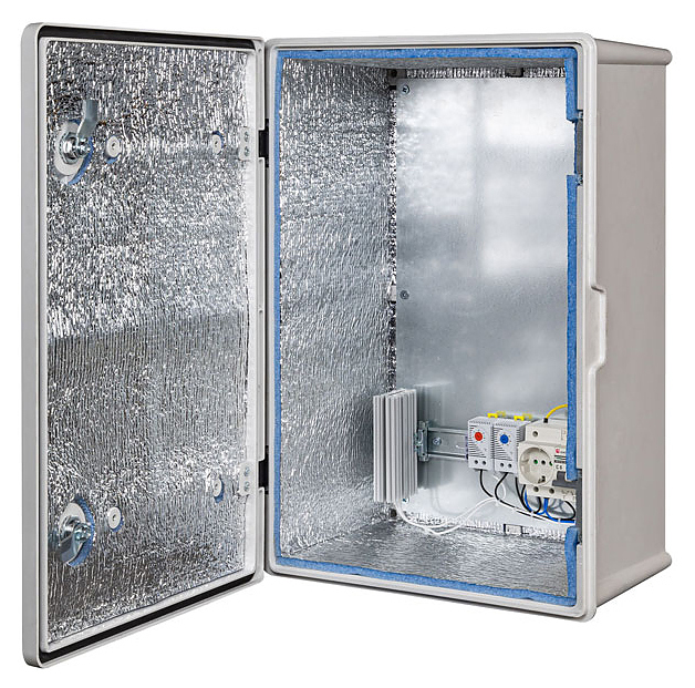 Климатический шкаф MASTERMANN Пластик-3УТП+ используется для безопасного размещения телекоммуникационного оборудования на предприятиях пищевой промышленности, общественного питания и торговли в уличных условиях или в помещениях с колебаниями параметров температуры и влажности. Модель отличается диэлектрическими свойствами и радиопрозрачностью. Технология гаскетинг обеспечивает бесшовность уплотнителя и высокий уровень герметичности. Корпус выполнен из композита, который отличается высокой прочностью и устойчивостью к коррозии, утеплитель - из порилекса. В комплект поставки входят 2 замка, ключ, монтажная плата, 2 гермоввода, розетка, автоматический выключатель, термореле, реле предстарта и нагреватель. Особенности: