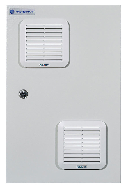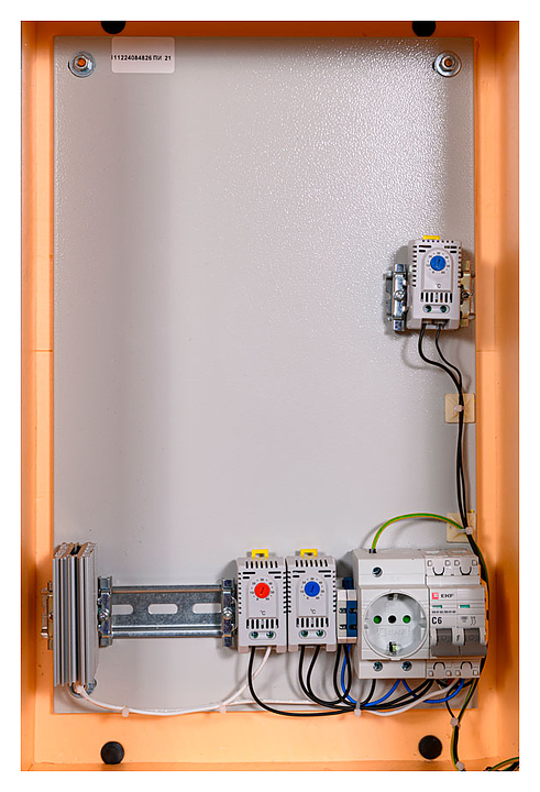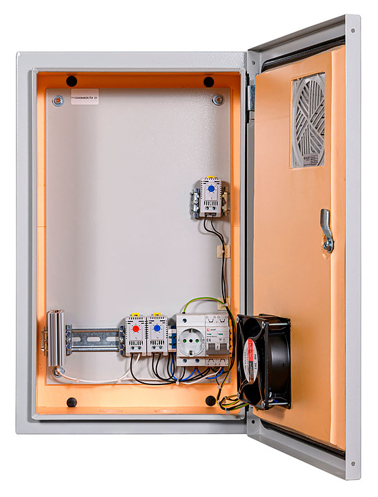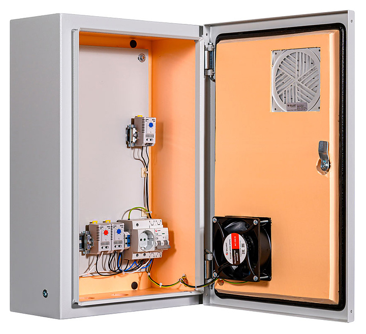 Климатический шкаф MASTERMANN 3УТПВ-А (Ver. 2.0) используется для безопасного размещения телекоммуникационного оборудования на предприятиях пищевой промышленности, общественного питания и торговли в уличных условиях или в помещениях с колебаниями параметров температуры и влажности. Монтажная панель с компонентами системы поддержания температуры обеспечивает безопасную работу оборудования. Термостат предстарта обеспечивает включение электрооборудования только при условии достижения оптимальной температуры эксплуатации. Корпус и дверь выполнены из стали, покрытой порошковой полиэфирной краской, утеплитель - из пенополистирола. В комплект поставки входят замок, ключ, монтажная плата, 2 гермоввода, розетка, автоматический выключатель, термореле, реле предстарта, нагреватель, вентилятор NTL FF 152 и 2 вентиляционные панели. Особенности: