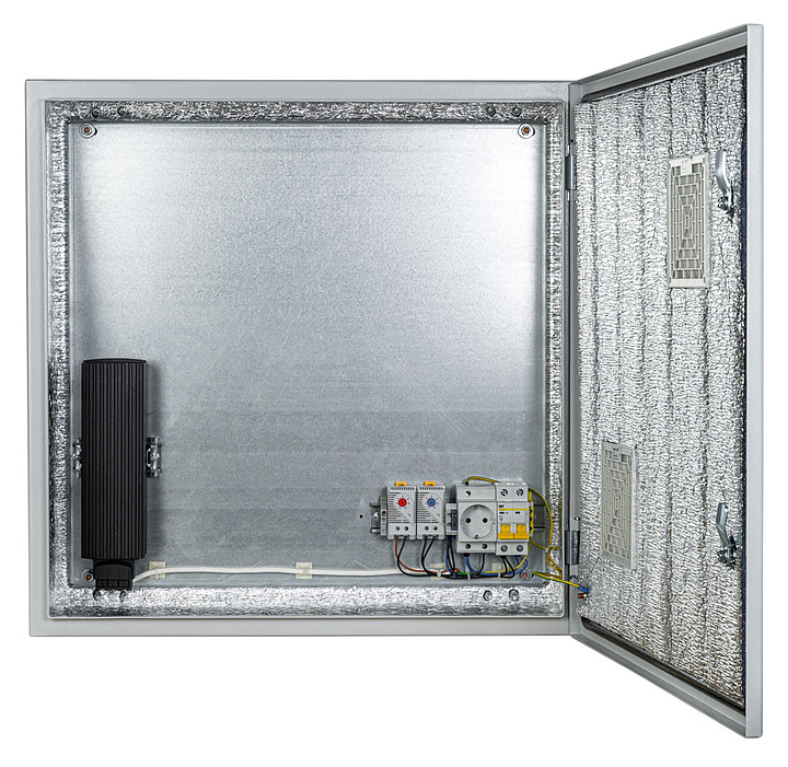 Климатический шкаф MASTERMANN 4УТПВ-П+ (Ver. 2.0) используется для безопасного размещения телекоммуникационного оборудования на предприятиях пищевой промышленности, общественного питания и торговли в уличных условиях или в помещениях с колебаниями параметров температуры и влажности. Монтажная панель с компонентами системы поддержания температуры обеспечивает безопасную работу оборудования. Реле предстарта обеспечивает включение электрооборудования только при условии достижения оптимальной температуры эксплуатации. Корпус и дверь выполнены из стали, покрытой порошковой полиэфирной краской, утеплитель - из порилекса НПЭ. В комплект поставки входят 2 замка, ключ, монтажная плата, люк под гермовводы, 5 гермовводов, розетка, автоматический выключатель, термореле, реле предстарта, 2 вентиляционные панели и нагреватель. Особенности: