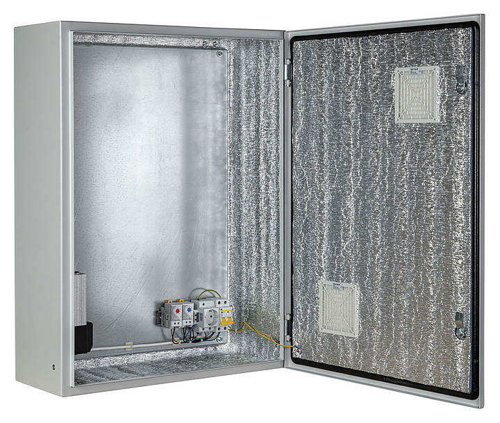 Климатический шкаф MASTERMANN 5УТПВ-П+ (Ver. 2.0) используется для безопасного размещения телекоммуникационного оборудования на предприятиях пищевой промышленности, общественного питания и торговли в уличных условиях или в помещениях с колебаниями параметров температуры и влажности. Монтажная панель с компонентами системы поддержания температуры обеспечивает безопасную работу оборудования. Реле предстарта обеспечивает включение электрооборудования только при условии достижения оптимальной температуры эксплуатации. Корпус и дверь выполнены из стали, покрытой порошковой полиэфирной краской, утеплитель - из порилекса НПЭ. В комплект поставки входят 2 замка, ключ, монтажная плата, люк под гермовводы, 5 гермовводов, розетка, автоматический выключатель, термореле, реле предстарта, 2 вентиляционные панели и нагреватель. Особенности: