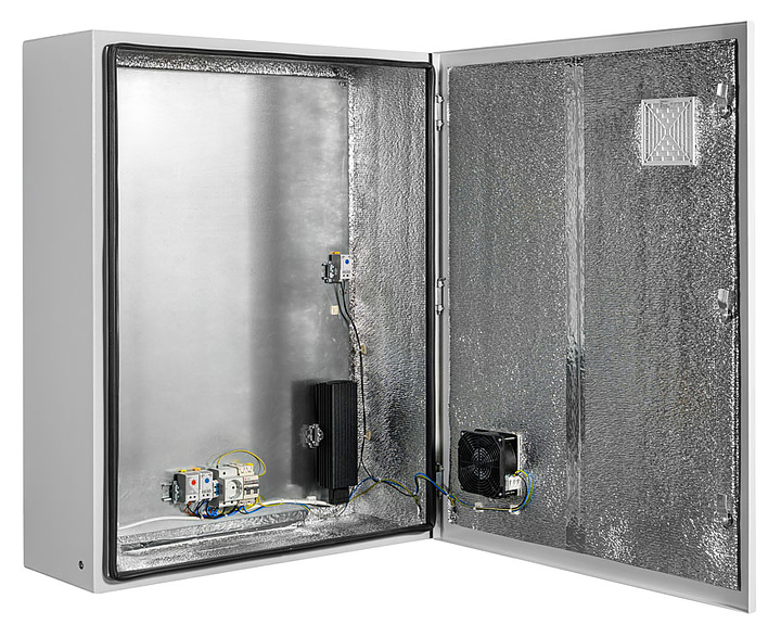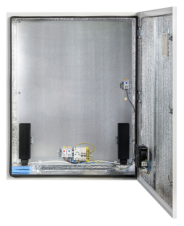 Климатический шкаф MASTERMANN 15УТПВ-А (Ver. 2.0) используется для безопасного размещения телекоммуникационного оборудования на предприятиях пищевой промышленности, общественного питания и торговли в уличных условиях или в помещениях с колебаниями параметров температуры и влажности. Монтажная панель с компонентами системы поддержания температуры обеспечивает безопасную работу оборудования. Реле предстарта обеспечивает включение электрооборудования только при условии достижения оптимальной температуры эксплуатации. Корпус и дверь выполнены из стали, покрытой порошковой полиэфирной краской, утеплитель - из порилекса. В комплект поставки входят 2 замка, ключ, монтажная плата, 5 гермовводов MG-25, розетка, автоматический выключатель 6А, 2 клеммы для подключения оборудования, клемма заземления, термореле, реле предстарта, 2 нагревателя, вентилятор с решеткой и фильтром и вентиляционная решетка с фильтром. Особенности: