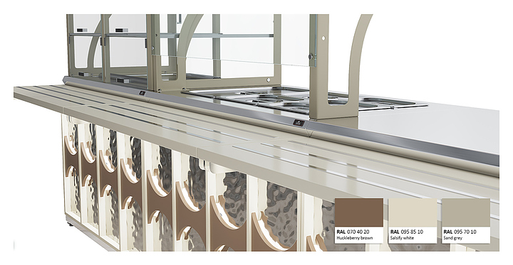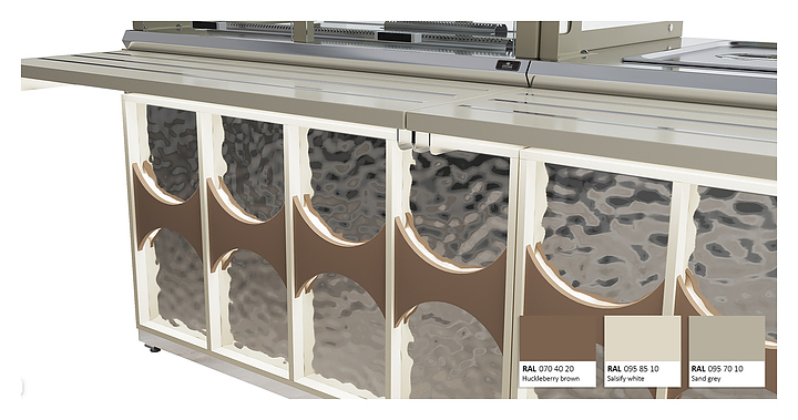 Мармит первых блюд 2-конфорочный Luxstahl МПЧ (С)-1200 Premium Mirror (Зеркало) с направляющей из нержавеющей стали используется в составе линии раздачи Mirror на предприятиях общественного питания и торговли для кратковременного хранения в горячем состоянии первых блюд в наплитных котлах и раздачи их потребителю. Модель оснащена 2 чугунными конфорками и верхней полкой из стекла 6 мм. Каркас выполнен из нержавеющей стали AISI 430 толщиной 1 мм, фасад - из окрашенного МДФ, направляющая для подносов - из профильной трубы 25х25 мм. Особенности:
