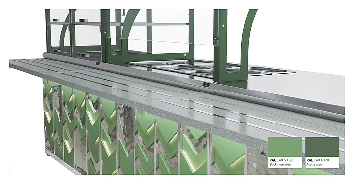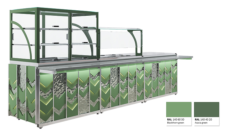 Нейтральный прилавок Luxstahl ПН-1200 ПН-1200 Premium Vector (Вектор) используется в составе линии раздачи Vector на предприятиях общественного питания и торговли для выкладки продуктов и напитков, не требующих подогрева или охлаждения, а также для установки дополнительного оборудования и приспособлений. Модель оснащена вместительной полкой в нише. Каркас выполнен из нержавеющей стали AISI 430 толщиной 1 мм, фасад - из окрашенного МДФ, направляющая для подносов - из профильной трубы 25х25 мм. Особенности: