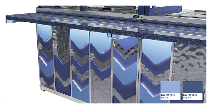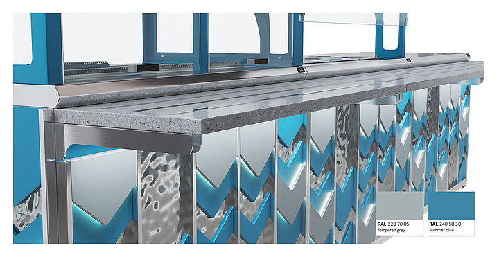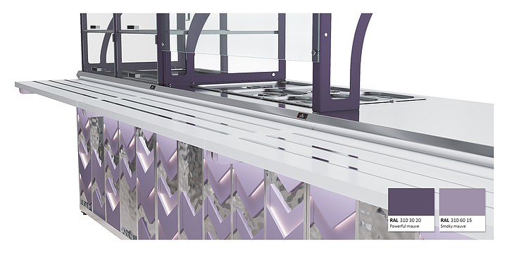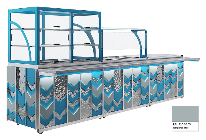 Прилавок для приборов (4 стакана) и подносов Luxstahl ПП (С)-600 Premium Vector (Вектор) с направляющей из нержавеющей стали используется в составе линии раздачи Vector на предприятиях торговли и общественного питания для хранения и раздачи столовых приборов, подносов, салфеток. Модель оснащена 4 нержавеющими стаканами для размещения столовых приборов и верхней полкой из двух стёкол, толщиной 6 мм. Каркас выполнен из нержавеющей стали AISI 430 толщиной 1 мм, фасад - из окрашенного МДФ, направляющая для подносов - из профильной трубы 25х25 мм. Особенности: