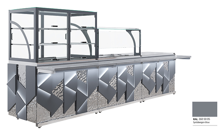 Нейтральный прилавок Luxstahl ПН-900 Premium Iceberg (Айсберг) используется в составе линии раздачи Iceberg на предприятиях общественного питания и торговли для выкладки продуктов и напитков, не требующих подогрева или охлаждения, а также для установки дополнительного оборудования и приспособлений. Модель оснащена вместительной полкой в нише. Каркас выполнен из нержавеющей стали AISI 430 толщиной 1 мм, фасад - из окрашенного МДФ, направляющая для подносов - из профильной трубы 25х25 мм. Особенности: