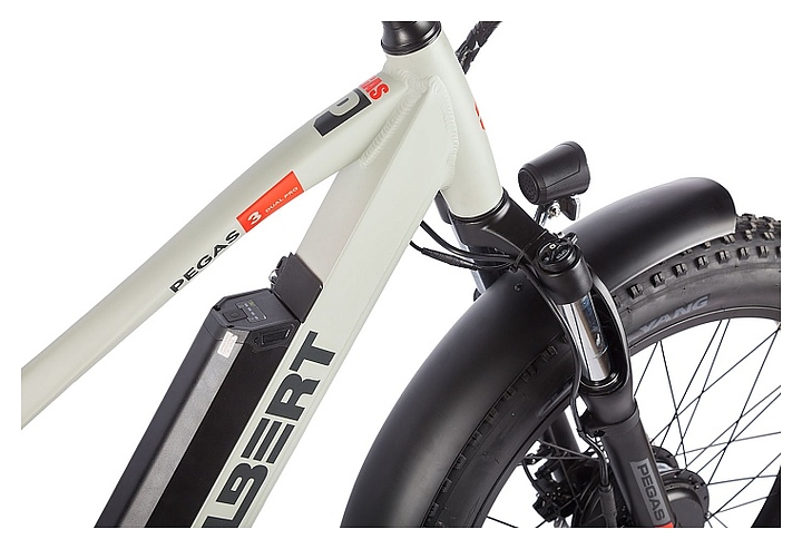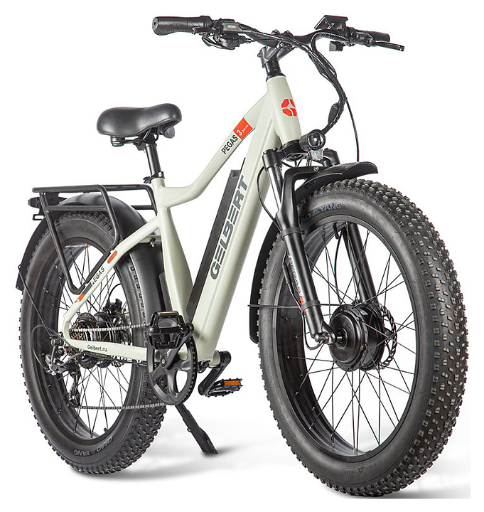 Электровелосипед GELBERT Pegas 3 DUAL PRO используется для езды по труднопроходимой местности: по глубокому песку, грязи, крутым подъемам и снежным трассам. Модель оснащена 2 редукторными моторами, багажником, крыльями, светодиодной фарой и задним фонарем с поворотниками. Передняя амортизационная вилка с блокировкой и широкие колеса гарантируют плавный ход на неровностях. Рама выполнена из алюминия, багажник и крылья - из металла. Особенности:
