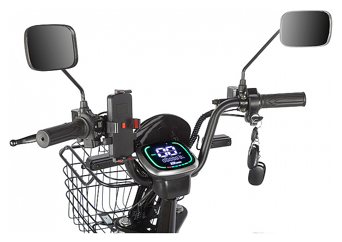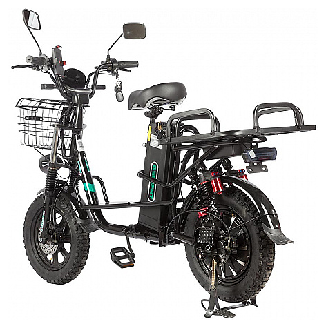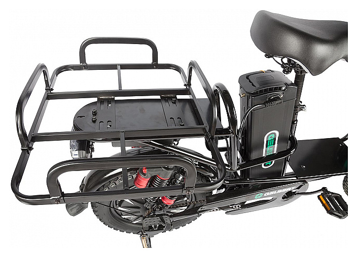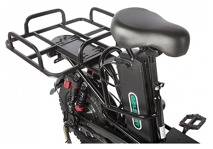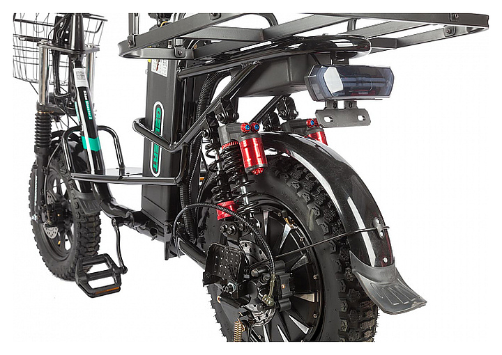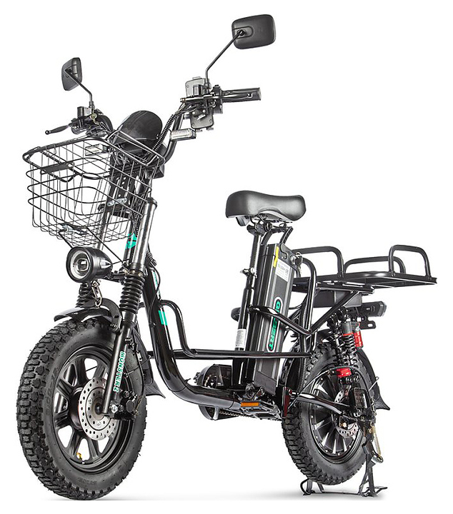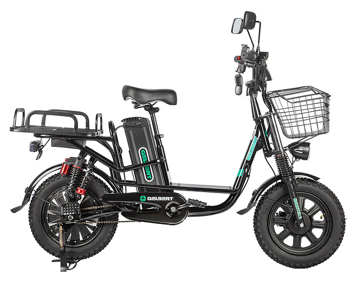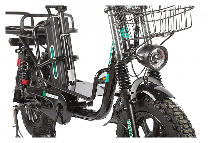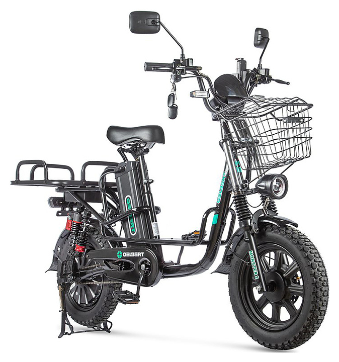 Электровелосипед GELBERT Khan Monster 2 используется для курьерских служб, доставки, проката или комфортного передвижения по городу и бездорожью. Модель оснащена удобным мягким сиденьем, цветным дисплеем для контроля параметров поездки, широким багажником и вместительной корзиной на руле. Передние и задние дисковые гидравлические тормоза гарантируют мгновенную остановку в любых условиях. Передняя вилка и усиленные задние гидравлические рессоры обеспечивают плавность хода даже на неровных дорогах. Рама выполнена из стали, корзина - из металла. В комплект поставки входят 2 брелока. Особенности: