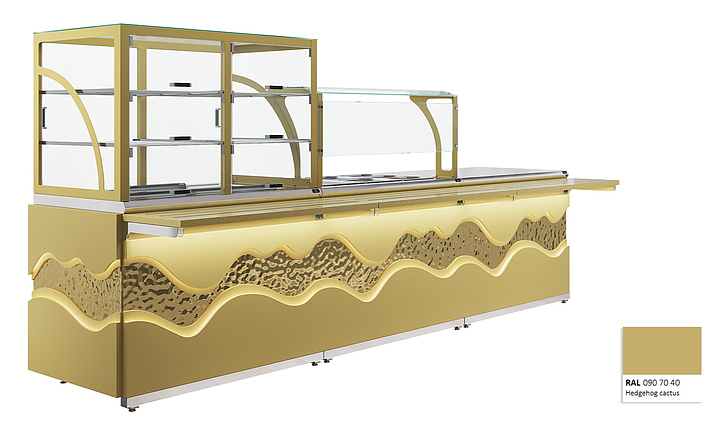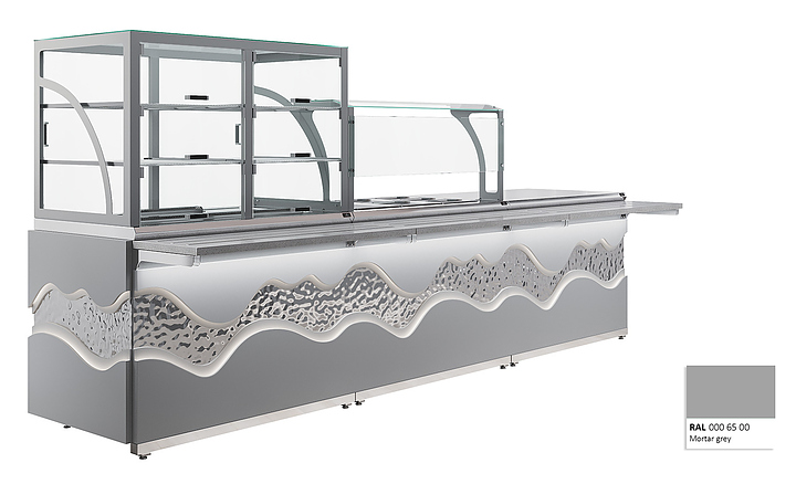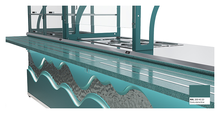 Прилавок кассовый универсальный Luxstahl КК-1200 Premium River (Река) с направляющей для подносов из нержавеющей стали используется в составе линии раздачи River на предприятиях общественного питания и торговли для оборудования рабочего места продавца-кассира. Модель оснащена дополнительной полкой и отверстием для кабеля. Каркас выполнен из нержавеющей стали AISI 430 толщиной 1 мм, фасад - из окрашенного МДФ, направляющая для подносов - из профильной трубы 25х25 мм. Особенности: