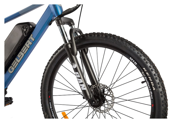 Электровелосипед GELBERT Ran 1 ST используется для езды по бездорожью. Модель оснащена ЖК-дисплеем для контроля скорости, пробега и уровня заряда. Дисковые механические тормоза спереди и сзади гарантируют надежную остановку в любых условиях. Пружинно-эластомерная вилка обеспечивает необходимую жесткость, управляемость и комфорт на сложных маршрутах. Рама выполнена из алюминия. Особенности: