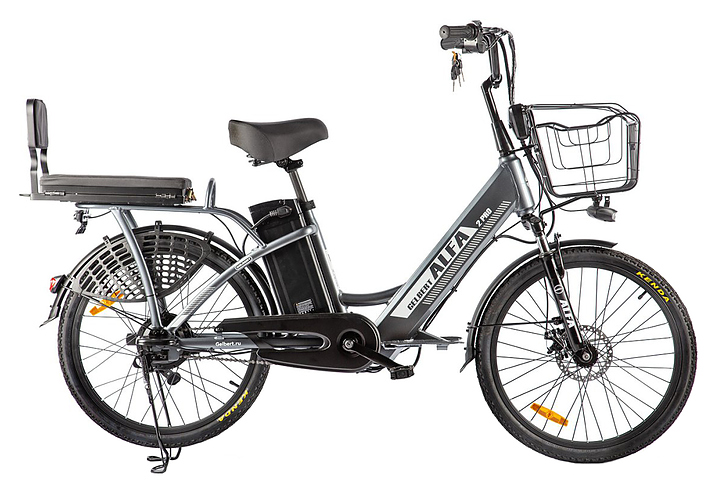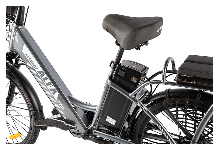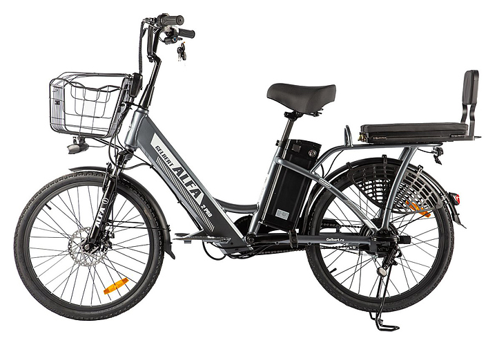 Электровелосипед GELBERT ALFA 2 PRO используется для отдыха и работы в городе и за его пределами. Модель оснащена яркой фарой, задним фонарем со стоп-сигналом, поворотниками, корзиной и крыльями с брызговиками. Универсальный задний багажник раскладывается в сиденье для пассажира или платформу для груза. Передний дисковый механический и задний барабанный тормоза гарантируют плавную и надежную остановку. Рама выполнена из алюминия, крылья и корзина - из металла. Особенности: