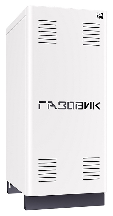Газовый отопительный котел Лемакс Газовик АОГВ-6-1 предназначен для эксплуатации в системах отопления с принудительной или естественной циркуляцией теплоносителя в жилых и загородных частных домах, а также других бытовых и хозяйственных объектах. Модель оснащена газогорелочным устройством ГГУ-9 с инжекционными микрофакельными горелками Polidoro (Италия) и автоматикой безопасности 630 EUROSIT (Италия) с расположенным за дверью механическим поворотно-нажимным переключателем, сварным теплообменником прямоугольной формы с цилиндрическими дымогарными каналами с турбулизаторами, вертикально установленным патрубком дымохода, расположенными на тыльной стенке резьбовым штуцером для подключения газа, патрубками подачи и обратки отопительного контура. Вертикально ориентированный корпус выполнен из стали с антикоррозийным покрытием белого цвета, теплообменник – из высококачественной стали с внешним покрытием антикоррозийной термостойкой эмалью и внутренней обработкой ингибирующим соли составом, горелки – из жаропрочной нержавеющей стали. В комплект поставки входят инструкция по эксплуатации, гарантийный талон и заводская упаковка. Особенности: