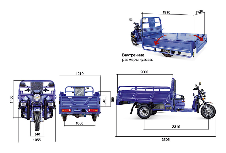 Грузовой электроцикл Rutrike Эксперт ПРО 2000 используется для перемещения тяжелых грузов и оборудования на территориях предприятий и хозяйств, на территориях парков и отелей, выставочных и туристических комплексов, в коттеджных поселках, на фермах и в агрокомплексах. Модель оснащена вместительным отсеком с ключом под сидением водителя для перевозки инвентаря, инструментов и личных вещей, а также кузовом с откидными бортами, что упрощает погрузку, разгрузку и перевозку. Колеса имеют развитые грунтозацепы для передвижения по твердому и мягкому дорожному покрытию. Внимание! Данная конструкция не предусмотрена для фиксации кузова в поднятом положении, а лишь для облегчения его подъёма! Аккумуляторные батареи и зарядное устройство в комплект поставки не входят. Особенности: