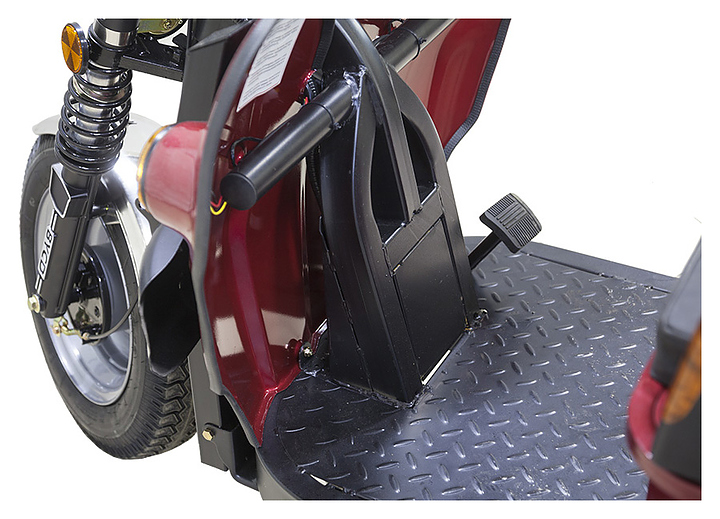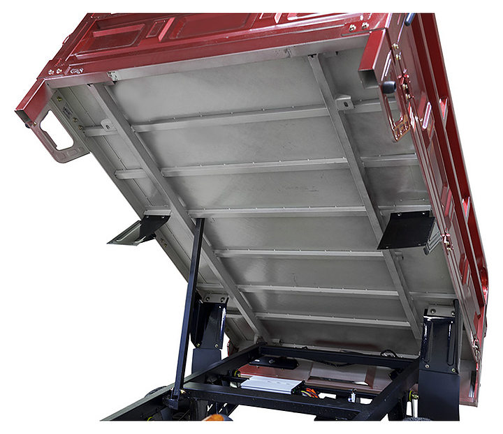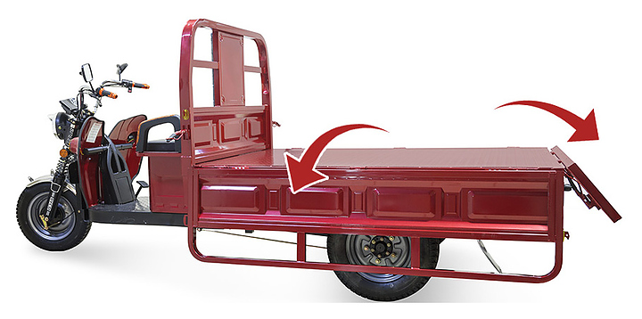Грузовой электроцикл Rutrike D4 1800 используется для перемещения грузов и оборудования в курортных зонах, парках, в складских помещениях, на территории промышленных предприятий, заводов и фабрик. Модель оснащена тяговым бесщеточным двигателем, пониженной передачей с усиленным редуктором, отсеком с ключом под сиденьем и кузовом с откидными бортами. Большие широкие колеса имеют развитые грунтозацепы для передвижения по твердому и мягкому дорожному покрытию. Рама выполнена из стали. Внимание! Данная конструкция не предусмотрена для фиксации кузова в поднятом положении, а лишь для облегчения его подъёма! Аккумуляторные батареи и зарядное устройство в комплект поставки не входят. Особенности: