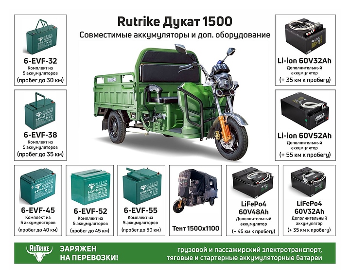 Грузовой электроцикл Rutrike Дукат 1500 используется для перемещения грузов и оборудования в курортных зонах, парках, в складских помещениях, на территории промышленных предприятий, заводов и фабрик. Модель оснащена тяговым бесщеточным двигателем, грузовым отсеком с быстьросъемными бортами и линзованной светодиодной фарой. Пониженная передача позволяет уверенно преодолевать подъемы и неровные поверхности. Внимание! Данная конструкция не предусмотрена для фиксации кузова в поднятом положении, а лишь для облегчения его подъёма! Аккумуляторные батареи и зарядное устройство в комплект поставки не входят. Особенности:
