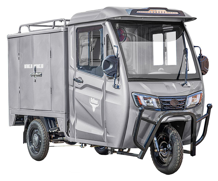 Грузовой электроцикл Rutrike Карго Кабина Дуал используется для перемещения грузов и оборудования в курортных зонах, парках, в складских помещениях, на территории промышленных предприятий, заводов и фабрик. Модель оснащена герметичной кабиной, кузовом типа фургон, линзованной светодиодной фарой и усиленной конструкцией рамы. Тяговый бесщеточный двигатель гарантирует плавную динамику при старте. Внимание! Данная конструкция не предусмотрена для фиксации кузова в поднятом положении, а лишь для облегчения его подъёма! Аккумуляторные батареи и зарядное устройство в комплект поставки не входят. Особенности: