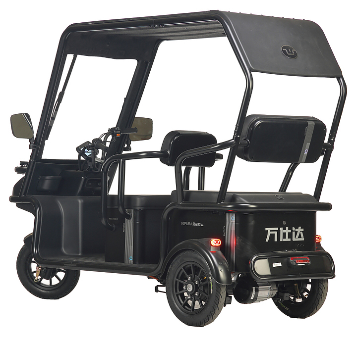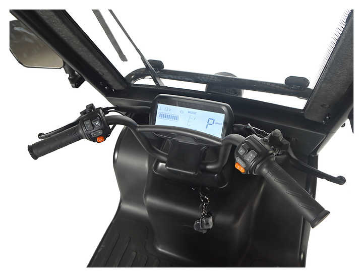 Трицикл WANSHIDA NIPLA 570 предназначен для комфортного передвижения по городу, в парках, на закрытых территориях и за городом. Модель оснащена сиденьями с мягкими спинками, подлокотниками, багажным отсеком под задним сиденьем, цветным дисплеем на приборной панели и крышей от дождя, снега и яркого солнца. Большие зеркала заднего вида обеспечивают отличный обзор и повышают безопасность на дороге. Барабанные передние и задние тормоза гарантируют надежную остановку. Аккумуляторные батареи и зарядное устройство в комплект поставки не входят. Особенности: