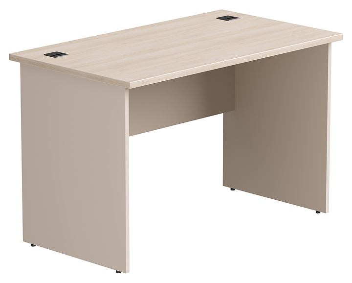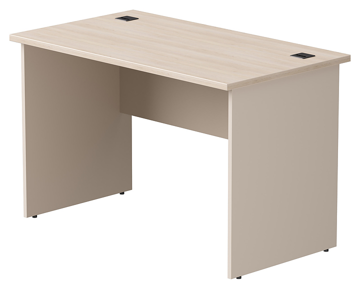 Офисный стол Everprof EVO 1180х670х755 мм используется для организации рабочего пространства в офисных помещениях. Коллекция отличается элегантным лаконичным дизайном для гармоничной интеграции в интерьеры, оформленные в стиле сканди, минимализм или современная классика. Модель оснащена столешницей прямоугольной формы и 2 опорами в виде глухих боковин с подпятниками, конструкция усилена экраном, расположенным между боковинами с тыльной стороны. Столешница, боковины и экран выполнены из высококачественной ламинированной древесно-стружечной плиты (ЛДСП), столешница с поверхностью оттенка дуб соната, боковины и экран с поверхностью оттенка кашемир. Дополнительные характеристики:
