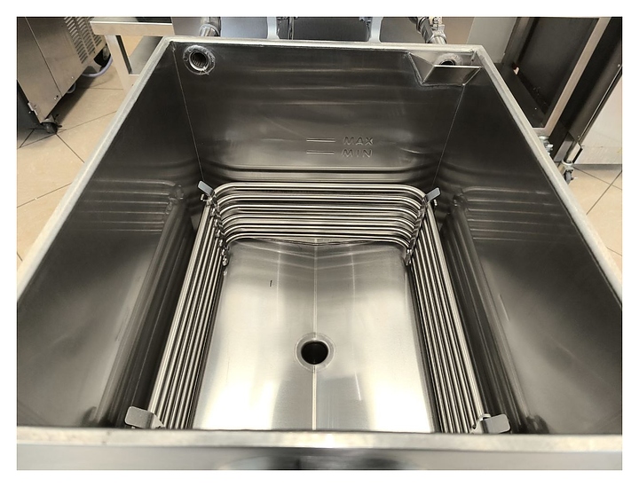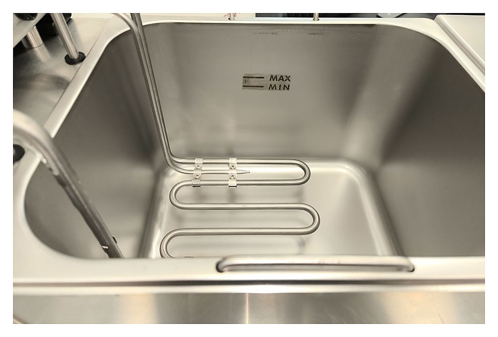 Настольная фритюрница REDGASTRO MDXZ-24D используется на предприятиях пищевой промышленности, общественного питания и торговли для приготовления цыпленка в панировке, рыбы, овощей и других блюд во фритюре. Модель оснащена прямоуольной ванной с крышкой, техническим отделением с распашной дверью, панелью управления с LED-индикаторами и манометром. Корпус и ванна выполнены из высококачественной нержавеющей стали марки 304. В комплект поставки входят кабель питания и решетчатая корзина. Особенности: