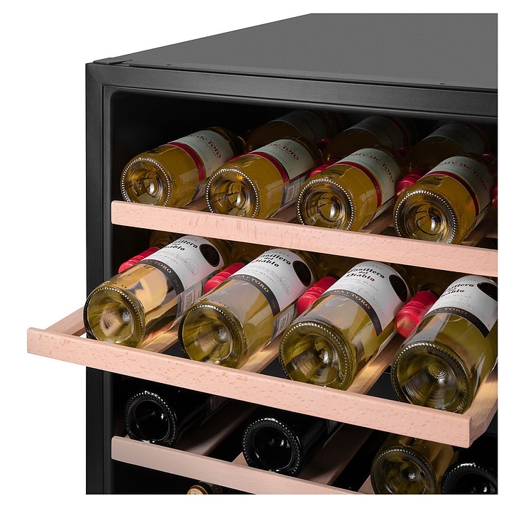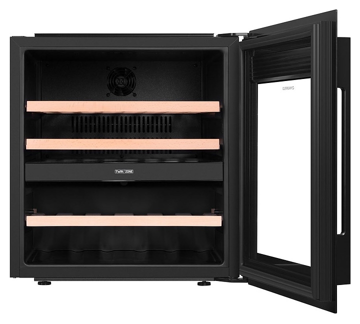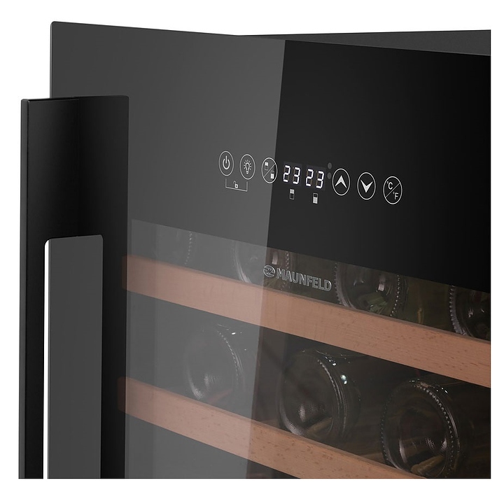 Винный шкаф Maunfeld MBWC-92DM36 предназначен для хранения при оптимальных условиях и предпродажной демонстрации бутилированного вина различных сортов в барах, ресторанах, специализированных магазинах, подсобных складских помещениях, а также домашних условиях. Модель оснащена холодильной камерой с 2 температурными зонами, правосторонней распашной дверью с обзорным остеклением и длинной уплощенной вертикальной рукояткой, кабелем питания, расположенной на фасаде двери электронной панелью управления с сенсорными функциональными клавишами и 2 цифровыми светодиодными дисплеями с белой подсветкой индикации. Корпус и рукоятка выполнены из металла с матовым антикоррозийным покрытием черного цвета, дверь с полным фронтальным остеклением без винтового крепежа из прозрачного тонированного стекла, внутренняя облицовка камеры черного цвета, полки – из массива буковой древесины. В комплект поставки входят 3 съемные полки с направляющими для размещения бутылок, крепеж для рукоятки, инструкция по эксплуатации, гарантийный талон и заводская упаковка. Особенности: