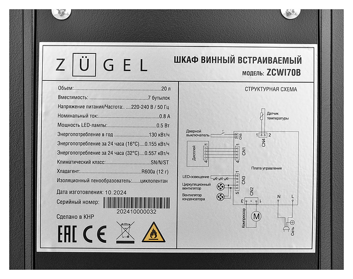 Винный шкаф Zugel ZCWI70B черный