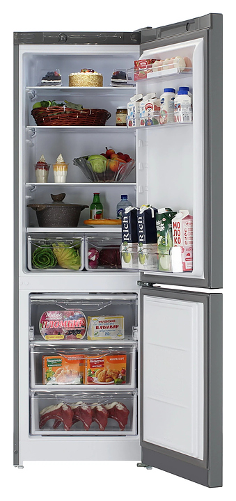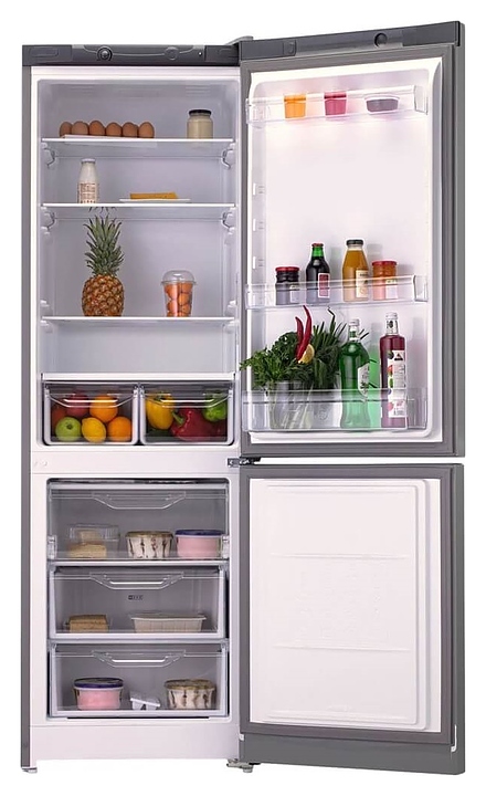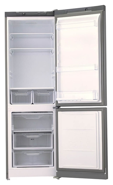 Холодильник Indesit DS 3180 G предназначен для охлаждения, замораживания, кратковременного и длительного хранения пищевых продуктов и напитков в гостиничных комплексах, офисах, а также домашних условиях. Модель оснащена холодильной камерой сверху и морозильной камерой снизу, правосторонними распашными дверьми на перенавешиваемых петлях, кабелем питания с вилкой и расположенной за дверью в верхней части фронта электромеханической панелью управления. Фасады дверей и боковины выполнены из металла с антикоррозийным покрытием серебристого оттенка, внутренняя облицовка камер – из белого пластика, плоские полки – из прочного прозрачного закаленного стекла с фронтальной окантовкой белого цвета, ящики холодильного отделения и навесные полки – из прозрачного пластика, ящики морозильного отделения – из белого пластика с прозрачным фронтом, упаковка – из гофрокартона, полимерной пленки и полистирола. Комплектация: