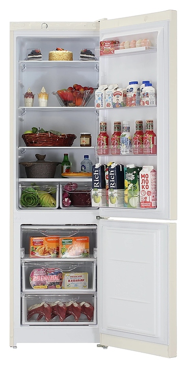 Холодильник Indesit DS 3200 E предназначен для охлаждения, замораживания, кратковременного и длительного хранения пищевых продуктов и напитков в гостиничных комплексах, офисах, а также домашних условиях. Модель оснащена холодильной камерой сверху и морозильной камерой снизу, правосторонними распашными дверьми на перенавешиваемых петлях, кабелем питания с вилкой и расположенной за дверью в верхней части фронта электромеханической панелью управления. Фасады дверей и боковины выполнены из металла с антикоррозийным покрытием бежевого оттенка, внутренняя облицовка камер – из белого пластика, плоские полки – из прочного прозрачного закаленного стекла с фронтальной окантовкой белого цвета, ящики холодильного отделения и навесные полки – из прозрачного пластика, ящики морозильного отделения – из белого пластика с прозрачным фронтом, упаковка – из гофрокартона, полимерной пленки и полистирола. Комплектация: