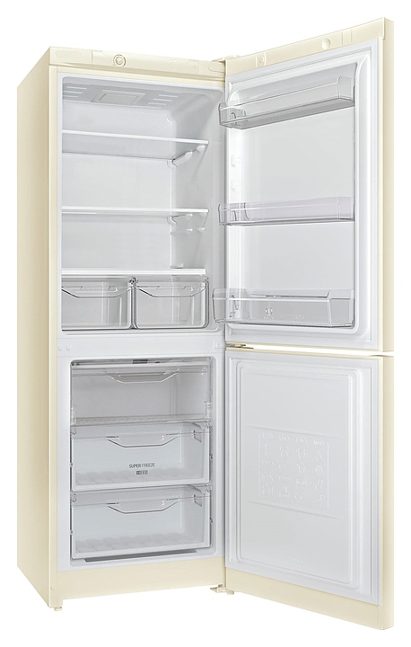 Холодильник Indesit DS 3160 E предназначен для охлаждения, замораживания, кратковременного и длительного хранения пищевых продуктов и напитков в гостиничных комплексах, офисах, а также домашних условиях. Модель оснащена холодильной камерой сверху и морозильной камерой снизу, правосторонними распашными дверьми на перенавешиваемых петлях, кабелем питания с вилкой и расположенной за дверью в верхней части фронта электромеханической панелью управления. Фасады дверей и боковины выполнены из металла с антикоррозийным покрытием бежевого оттенка, внутренняя облицовка камер – из белого пластика, плоские полки – из прочного прозрачного закаленного стекла с фронтальной окантовкой белого цвета, ящики холодильного отделения и навесные полки – из прозрачного пластика, ящики морозильного отделения – из белого пластика с прозрачным фронтом, упаковка – из гофрокартона, полимерной пленки и полистирола. Комплектация: