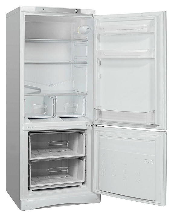 Холодильник Indesit ES 15 A предназначен для охлаждения, замораживания, кратковременного и длительного хранения пищевых продуктов и напитков в гостиничных комплексах, офисах, а также домашних условиях. Модель оснащена холодильной камерой сверху и морозильной камерой снизу, правосторонними распашными дверьми на перенавешиваемых петлях, кабелем питания с вилкой и расположенной в верхней части фронта электромеханической панелью управления. Фасады дверей и боковины выполнены из металла с антикоррозийным покрытием белого цвета, внутренняя облицовка камер – из белого пластика, плоские полки – из прочного прозрачного закаленного стекла с фронтальной окантовкой белого цвета, ящики холодильного отделения и навесные полки – из прозрачного пластика, ящики морозильного отделения – из белого пластика с прозрачным фронтом, упаковка – из гофрокартона, полимерной пленки и полистирола. Комплектация: