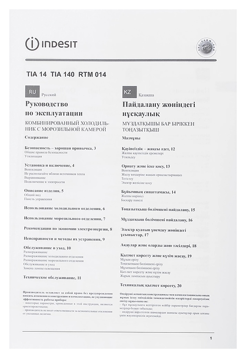 Холодильник Indesit TIA 14 предназначен для охлаждения, замораживания, кратковременного и длительного хранения пищевых продуктов и напитков в гостиничных комплексах, офисах, а также домашних условиях. Модель оснащена холодильной камерой снизу и морозильной камерой сверху, правосторонними распашными дверьми на перенавешиваемых петлях, кабелем питания с вилкой и расположенной за дверью морозильной камеры в верхней части фронта электромеханической панелью управления. Фасады дверей и боковины выполнены из металла с антикоррозийным покрытием белого цвета, внутренняя облицовка камер – из белого пластика, плоские полки – из прочного прозрачного закаленного стекла с фронтальной окантовкой белого цвета, навесные полки – из прозрачного пластика, ящики – из белого пластика с прозрачным фронтом, решетчатая полка – из металла с белым покрытием, упаковка – из гофрокартона, полимерной пленки и полистирола. Комплектация: