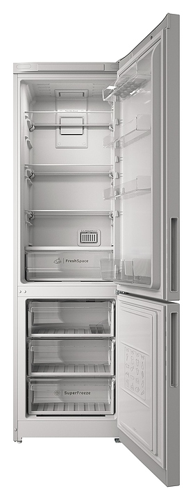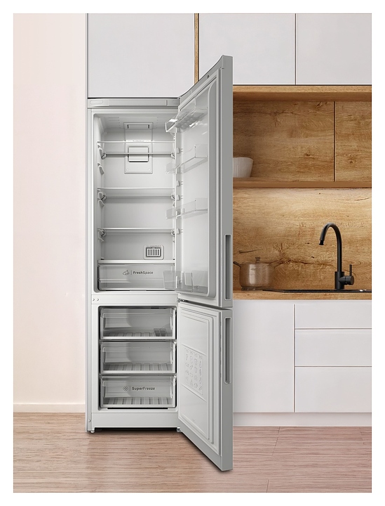 Холодильник Indesit ITR 5200 W предназначен для охлаждения, замораживания, кратковременного и длительного хранения пищевых продуктов и напитков в гостиничных комплексах, офисах, а также домашних условиях. Модель оснащена холодильной камерой сверху и морозильной камерой снизу, правосторонними распашными дверьми на перенавешиваемых петлях, кабелем питания с вилкой и расположенной на фасаде двери холодильной камеры электронной панелью управления с сенсорными функциональными клавишами и светодиодным дисплеем индикации. Фасады дверей и боковины выполнены из металла с антикоррозийным покрытием белого цвета, внутренняя облицовка камер – из белого пластика, плоские полки – из прочного прозрачного закаленного стекла с фронтальной окантовкой белого цвета, ящики холодильного отделения и навесные полки – из прозрачного пластика, ящики морозильного отделения – из белого пластика с прозрачным фронтом, упаковка – из гофрокартона, полимерной пленки и полистирола.