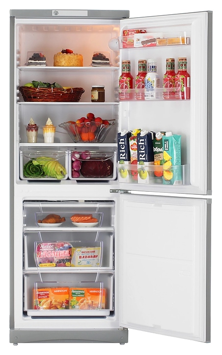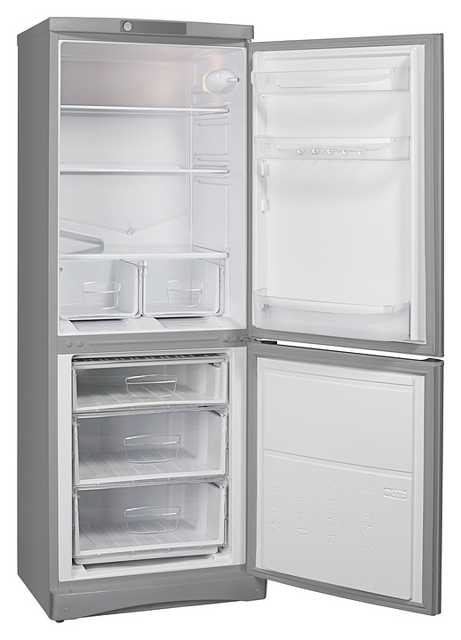 Холодильник Indesit ES 16 GA предназначен для охлаждения, замораживания, кратковременного и длительного хранения пищевых продуктов и напитков в гостиничных комплексах, офисах, а также домашних условиях. Модель оснащена холодильной камерой сверху и морозильной камерой снизу, правосторонними распашными дверьми на перенавешиваемых петлях, кабелем питания с вилкой и расположенной в верхней части фронта электромеханической панелью управления. Фасады дверей и боковины выполнены из металла с антикоррозийным покрытием серебристого оттенка, внутренняя облицовка камер – из белого пластика, плоские полки – из прочного прозрачного закаленного стекла с фронтальной окантовкой белого цвета, ящики холодильного отделения и навесные полки – из прозрачного пластика, ящики морозильного отделения – из белого пластика с прозрачным фронтом, упаковка – из гофрокартона, полимерной пленки и полистирола. Комплектация: