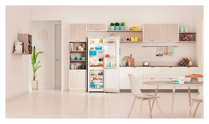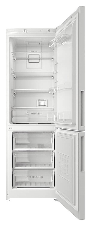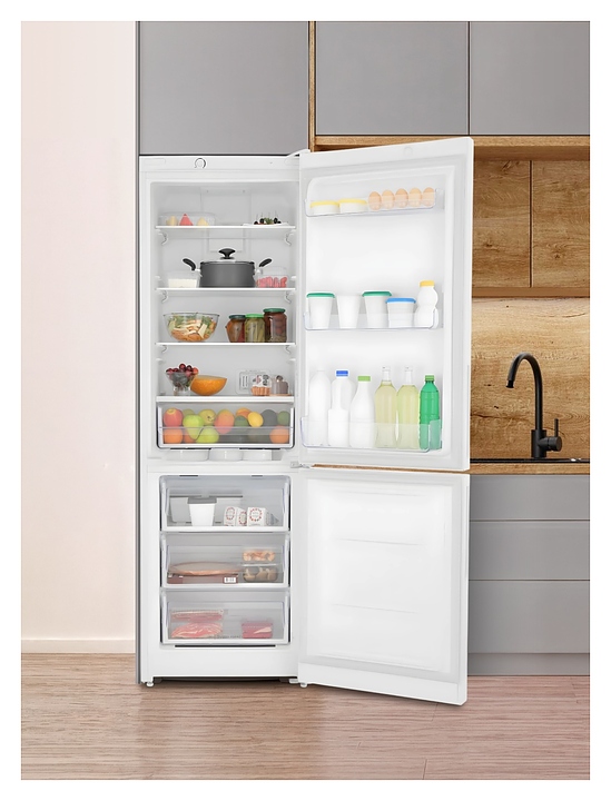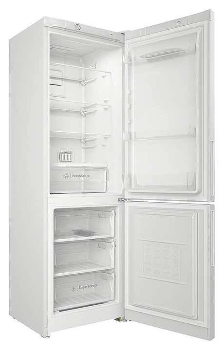Холодильник Indesit ITR 4180 W предназначен для охлаждения, замораживания, кратковременного и длительного хранения пищевых продуктов и напитков в гостиничных комплексах, офисах, а также домашних условиях. Модель оснащена холодильной камерой сверху и морозильной камерой снизу, правосторонними распашными дверьми на перенавешиваемых петлях, кабелем питания с вилкой и расположенной за дверью в верхней части фронта электромеханической панелью управления. Фасады дверей и боковины выполнены из металла с антикоррозийным покрытием белого цвета, внутренняя облицовка камер – из белого пластика, плоские полки – из прочного прозрачного закаленного стекла с фронтальной окантовкой белого цвета, ящик холодильного отделения и навесные полки – из прозрачного пластика, ящики морозильного отделения – из белого пластика с прозрачным фронтом, упаковка – из гофрокартона, полимерной пленки и полистирола.