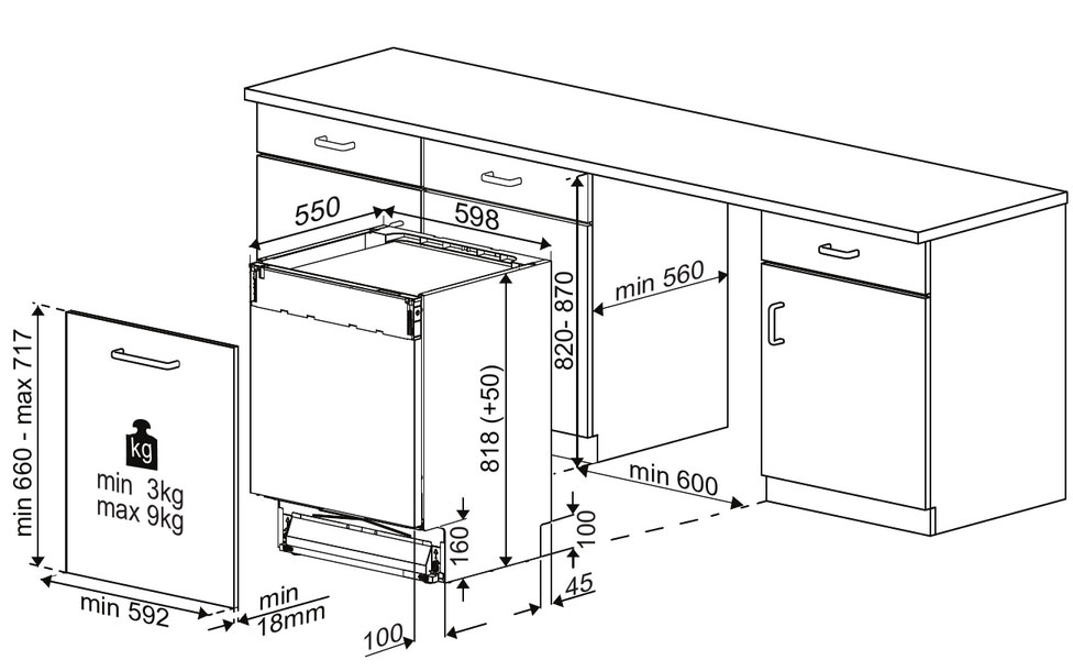 Минимальные габариты ниши для встраивания: 600х560х820 мм