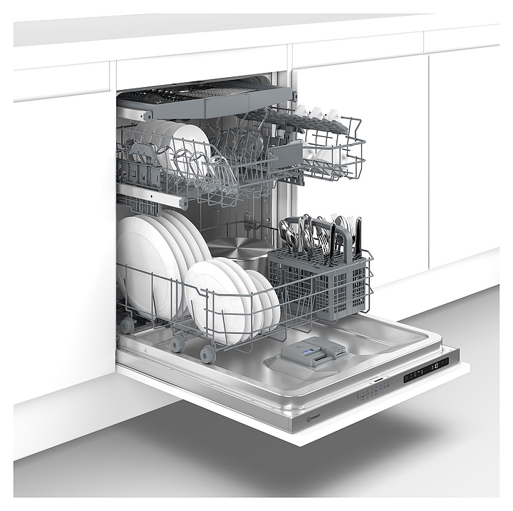 Встраиваемая посудомоечная машина Indesit DI 5C59 предназначена для гигиенической обработки и последующей сушки различной посуды в гостиничных комплексах и домашних условиях. Модель оснащена моечной камерой с откидной дверью с интегрированной рукояткой, 2 разбрызгивающими коромыслами, дозаторами моющих и ополаскивающих средств, устройством умягчения воды, кабелем питания с вилкой, расположенной на верхнем торце двери электронной панелью управления с нажимными функциональными клавишами, светодиодными сигнальными лампами и цифровым дисплеем с белой подсветкой индикации. Внутренняя облицовка камеры и двери выполнены из нержавеющей стали, упаковка – из гофрокартона, полимерной пленки и полистирола.