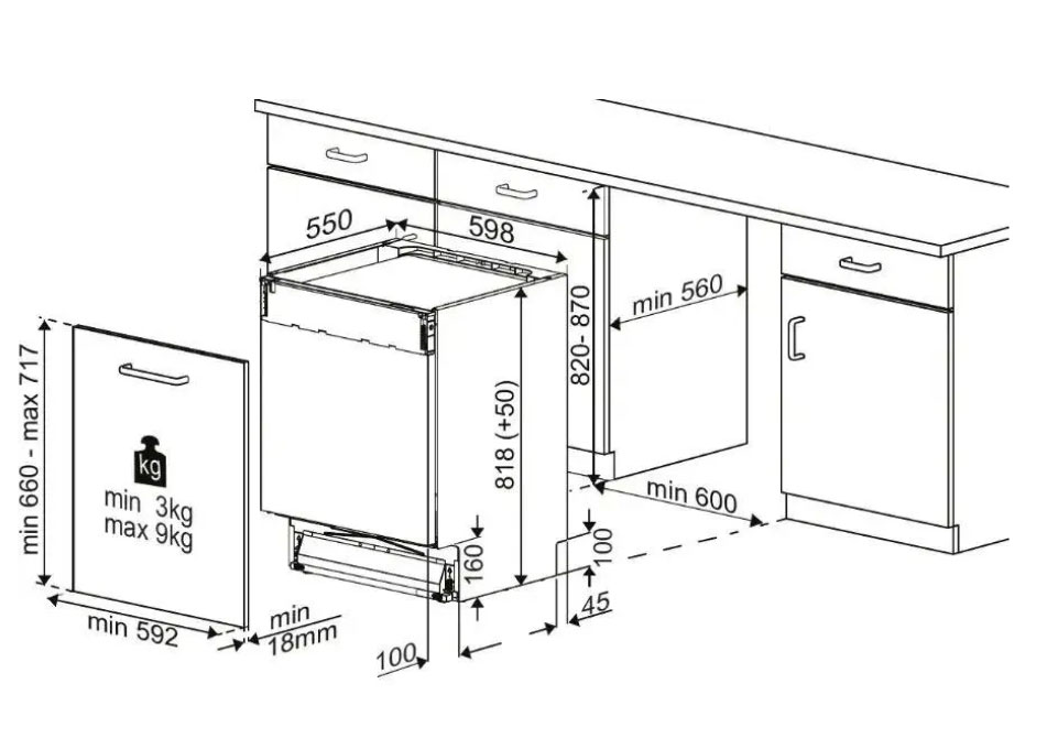 Минимальные габариты ниши для встраивания: 600х560х820 мм