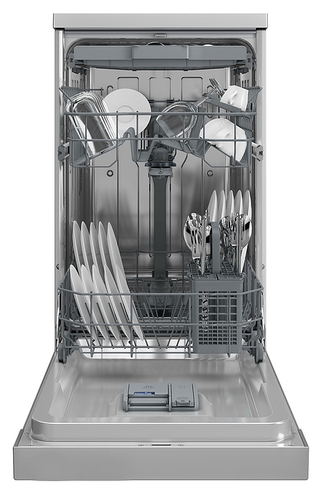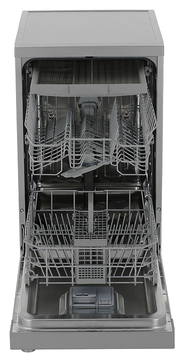Посудомоечная машина Indesit DFS 2A59 S предназначена для гигиенической обработки и последующей сушки различной посуды в гостиничных комплексах и домашних условиях. Модель оснащена моечной камерой с откидной дверью, 2 разбрызгивающими коромыслами, дозаторами моющих и ополаскивающих средств, устройством умягчения воды, кабелем питания с вилкой, расположенной на фасаде двери электромеханической панелью управления с поворотным переключателем, нажимными функциональными клавишами и светодиодными сигнальными лампами с красной подсветкой индикации. Внутренняя облицовка камеры и двери выполнены из нержавеющей стали, внешняя облицовка с поверхностью серебристого оттенка, упаковка – из гофрокартона, полимерной пленки и полистирола.